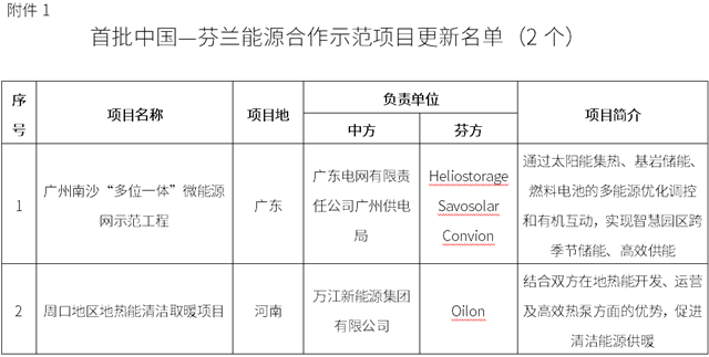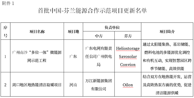 國家能源局公布首批中國—芬蘭能源合作示范項目更新名單以及第二批示范項目候選名單
