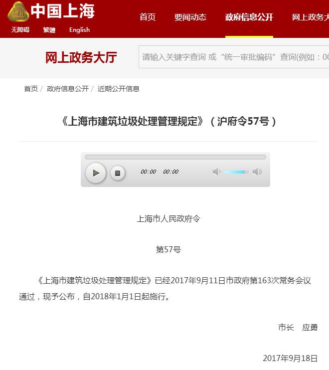 《上海市建筑垃圾處理管理規(guī)定》已經(jīng)2017年9月11日市政府第163次常務(wù)會(huì)議通過,現(xiàn)予公布,自2018年1月1日起施行。 來源:中國(guó)上海 官方網(wǎng)站上海市建筑垃圾處理管理規(guī)定(2017年9月18日上海市人民政府令第57號(hào)公布)第一章 總 則 第一條(目的和依據(jù)) 為了加強(qiáng)本市建筑垃圾的管理,促進(jìn)源頭...
