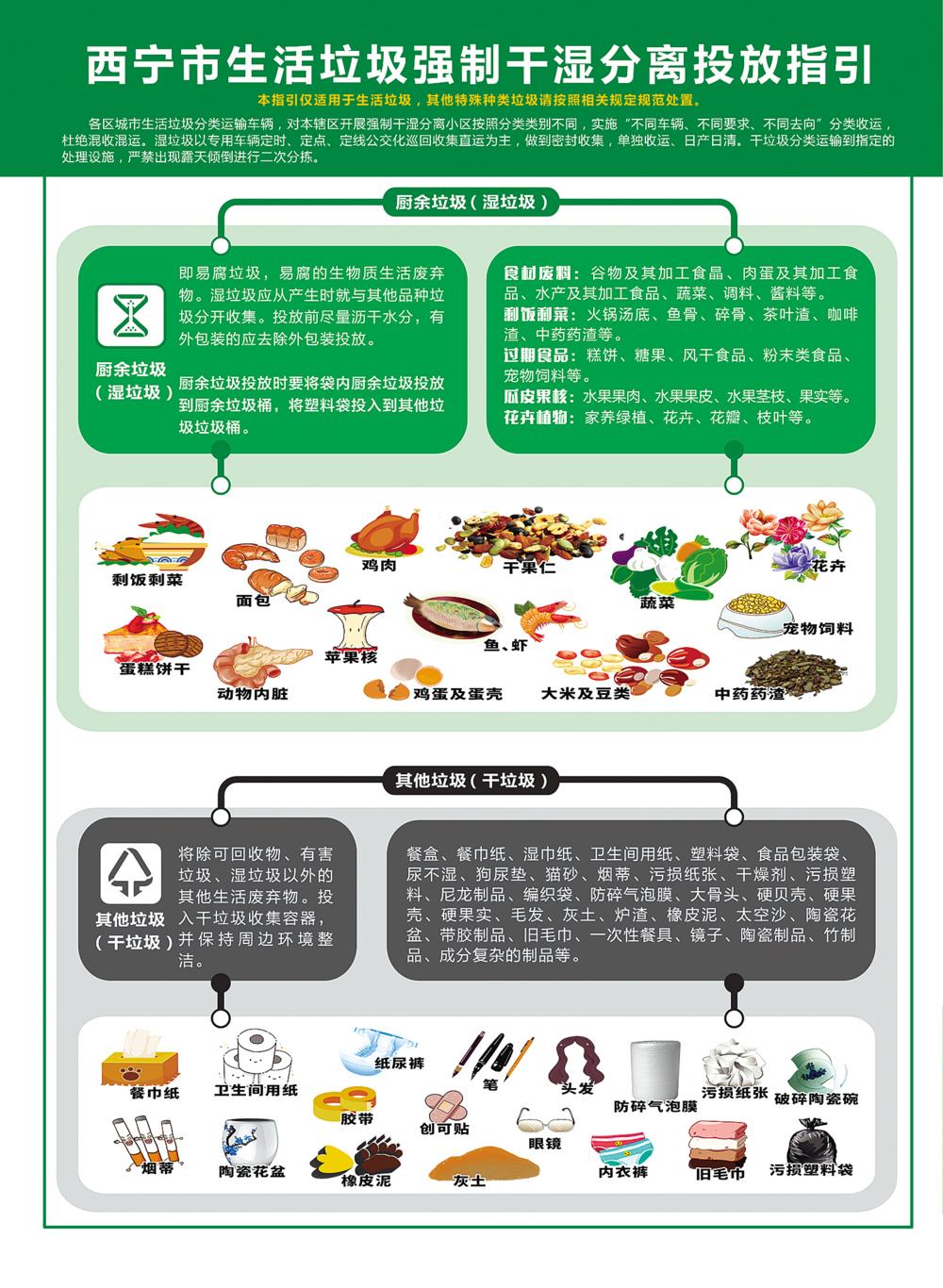 西寧市生活垃圾強(qiáng)制干濕分離投放指引圖。西寧市生活垃圾分類推進(jìn)辦公室供圖自1月7日起,西寧市全力開展生活垃圾“強(qiáng)制干濕分離”試點(diǎn)工作。12個(gè)試點(diǎn)小區(qū)、6605戶家庭正式進(jìn)行生活垃圾“強(qiáng)制干濕分離”。近日,記者分別探訪了幾處試點(diǎn)小區(qū),深入了解西寧市生活垃圾“強(qiáng)制干濕分離”試點(diǎn)工作。垃圾分類彰顯綠色發(fā)展理...