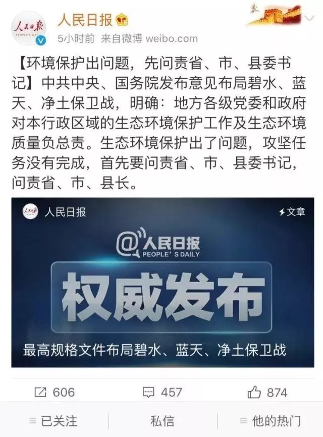 昨日,人民日報發(fā)布《這件事,習(xí)近平視為“根本大計”》、《環(huán)境保護腰桿硬起來》、《中央環(huán)保督察嚴(yán)禁“表面整改”》等數(shù)篇文章。而近日,中央紀(jì)委則首次集中通報了生態(tài)責(zé)任追究的典型問題。在第47個世界環(huán)境日,以如此猛烈的方式表達對環(huán)境的關(guān)注,無疑在釋放嚴(yán)肅查處破壞環(huán)境違紀(jì)違法行為的強烈信號,表明了中央對治理...