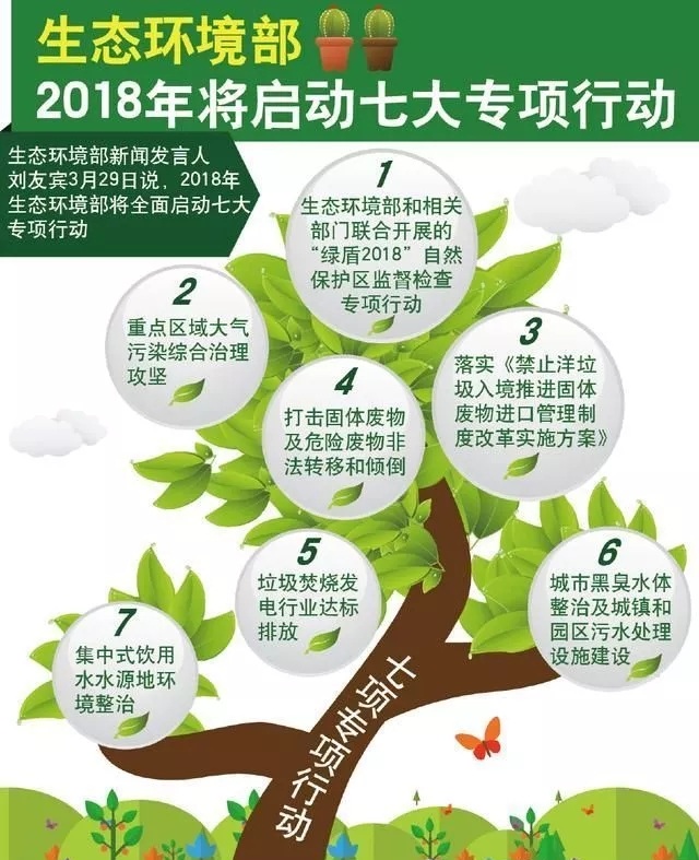 3月29日,生態(tài)環(huán)境部舉行了成立后的首場(chǎng)例行新聞發(fā)布會(huì)。新聞發(fā)言人劉友賓表示,中央環(huán)保督查工作將繼續(xù)推進(jìn)深化,再用三年左右時(shí)間完成第二輪中央環(huán)保督查全覆蓋。全面啟動(dòng)七大專(zhuān)項(xiàng)行動(dòng),作為打好“污染防治攻堅(jiān)戰(zhàn)”的標(biāo)志性工程。來(lái)源:新華網(wǎng)、央廣網(wǎng)在當(dāng)天舉行的新聞發(fā)布會(huì)上,他介紹這七項(xiàng)專(zhuān)項(xiàng)行動(dòng)是:這七大專(zhuān)項(xiàng)行...