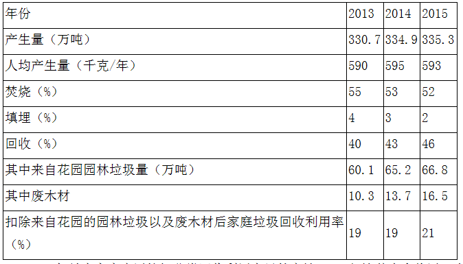 丹麥是地處北歐,經(jīng)濟高度發(fā)達,人口數(shù)量 573萬(2016年),國土面積 43096平方公里,人口密度 135.6人/平方公里(2016年)。根據(jù)丹麥環(huán)境部2015年統(tǒng)計公報(waste statiistcs 2015,丹麥環(huán)境部 2017 年8月),丹麥家庭人均年產(chǎn)生量接近600千克(見表1),折...