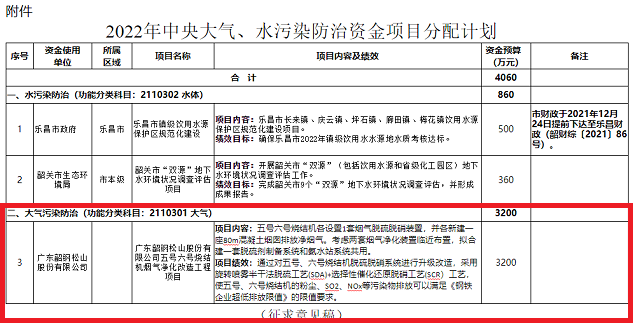 韶關(guān)市生態(tài)環(huán)境局關(guān)于2022年中央大氣、水污染防治資金項目分配計劃的公示 按照《廣東省省級財政專項資金管理辦法(試行)》(粵府〔2018〕120號)和《廣東省省級生態(tài)環(huán)境專項資金管理細則》(粵環(huán)函〔2019〕1135號)等要求,現(xiàn)將2022年中央大氣、水污染防治資金項目分配計劃予以公示。 如有異議,...
