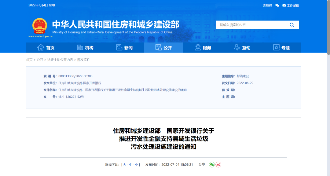 縣域生活垃圾污水處理設(shè)施建設(shè)“錢”的問題,終于有了解決方案。 7月4日,住房和城鄉(xiāng)建設(shè)部、國家開發(fā)銀行聯(lián)合發(fā)布《關(guān)于推進開發(fā)性金融支持縣域生活垃圾污水處理設(shè)施建設(shè)的通知》(下稱《通知》),對縣域生活垃圾污水處理設(shè)施建設(shè)給出金融支持。 具體來講,未來如果是納入項目儲備庫的項目,...