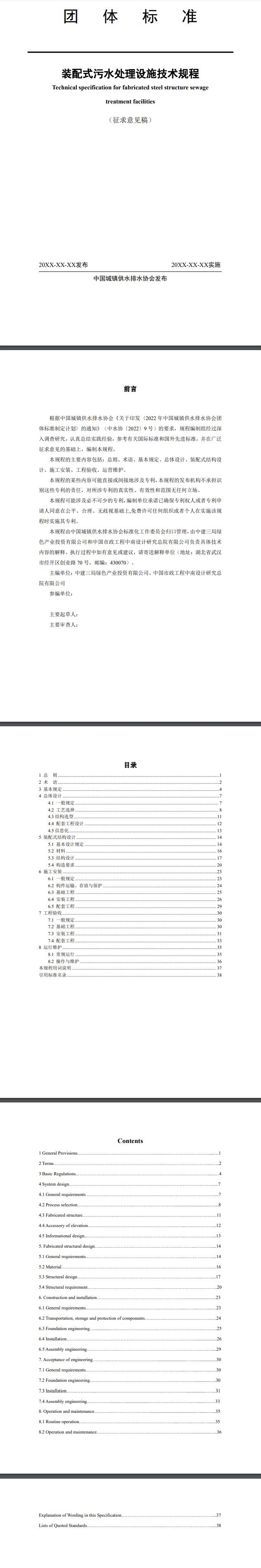 中國城鎮(zhèn)供水排水協(xié)會關(guān)于征求團體標(biāo)準(zhǔn) 《裝配式污水處理設(shè)施技術(shù)規(guī)程(征求意見稿)》 意見的通知各有關(guān)單位和專家: 根據(jù)《關(guān)于印發(fā)<2022年中國城鎮(zhèn)供水排水協(xié)會團體標(biāo)準(zhǔn)制訂計劃>的通知》(中水協(xié)〔2022〕9號),我協(xié)會組織中建三局綠色產(chǎn)業(yè)投資有限公司、中國市政工程中南設(shè)計研究總院有限公...