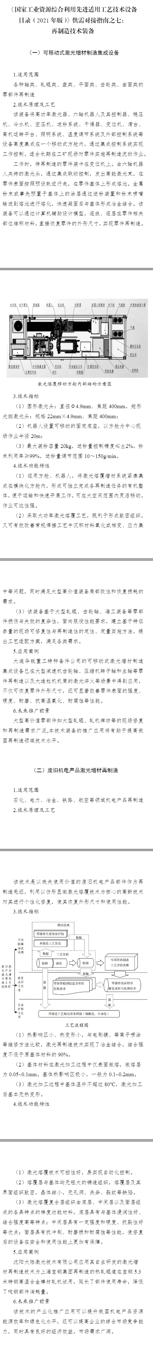 《國(guó)家工業(yè)資源綜合利用先進(jìn)適用工藝技術(shù)設(shè)備目錄(2021年版)》供需對(duì)接指南——再制造技術(shù)裝備