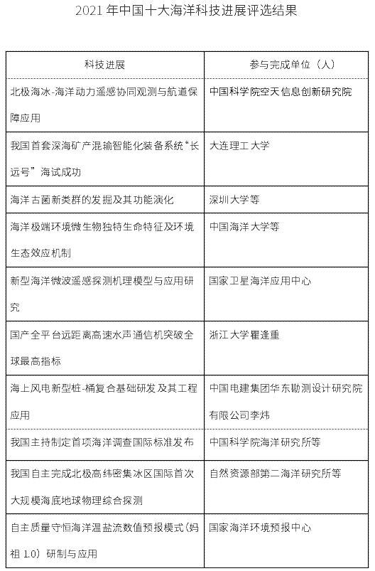 2021年度中國十大海洋科技進(jìn)展評選結(jié)果公示 環(huán)境生態(tài)效應(yīng)和海上風(fēng)電相關(guān)技術(shù)入選