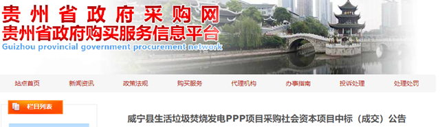 貴州省威寧縣生活垃圾焚燒發(fā)電PPP項(xiàng)目發(fā)布中標(biāo)公告,河南富鑫投資有限公司(牽頭人)、臨安嘉盛環(huán)保有限公司和山東黃河建工有限公司組成的聯(lián)合體成為中標(biāo)的社會資本方,中標(biāo)金額為60元/噸。 10月26日,該項(xiàng)目發(fā)布招標(biāo)公告,根據(jù)公告顯示,項(xiàng)目所在地位于畢節(jié)市威寧彝族回族苗族自治縣五里崗辦事處,X782道路...