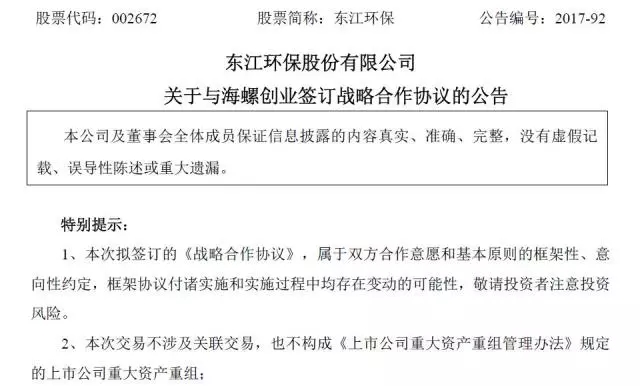 12月4日下午,東江環(huán)保發(fā)布公告稱,公司擬與中國海螺創(chuàng)業(yè)控股有限公司(下簡稱“海螺創(chuàng)業(yè)”)于2017年12月6日簽署《戰(zhàn)略合作協(xié)議》,就水泥窯協(xié)同處置固廢事宜達(dá)成戰(zhàn)略合作意向。預(yù)計雙方將在固廢處理領(lǐng)域?qū)崿F(xiàn)強(qiáng)強(qiáng)聯(lián)合、優(yōu)勢互補(bǔ),共同推進(jìn)危廢處理行業(yè)的健康發(fā)展。來源:中證網(wǎng)海螺創(chuàng)業(yè)海螺創(chuàng)業(yè)是一家在香港聯(lián)合...