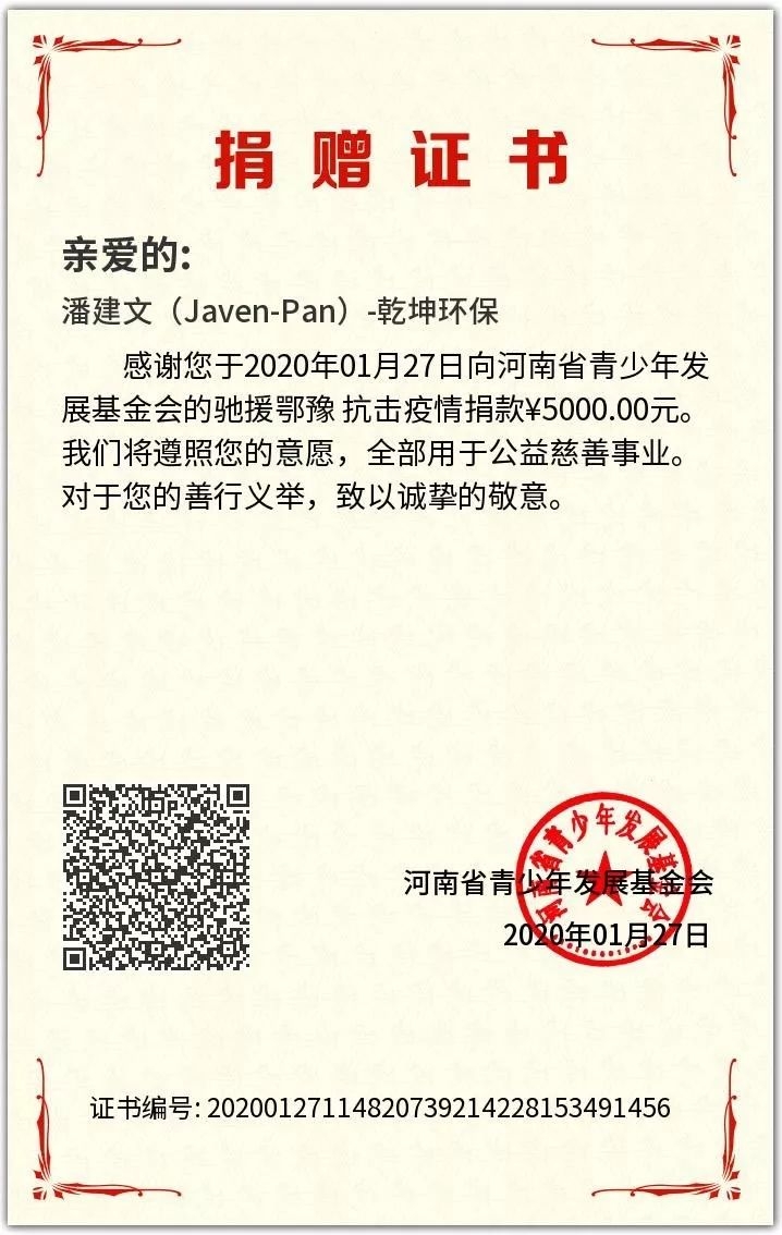 全國人民在黨中央的堅(jiān)強(qiáng)領(lǐng)導(dǎo)下打響了新冠肺炎疫情阻擊戰(zhàn),發(fā)生了許多可歌可泣的感人事跡。無數(shù)企業(yè)捐錢捐物,有錢出錢無錢出力眾志成城,共克時(shí)艱。 作為一家擁有高度社會(huì)責(zé)任感的環(huán)保企業(yè),乾坤環(huán)保股份有限公司(下文簡稱“乾坤環(huán)保”)連續(xù)多次捐贈(zèng)防疫物資,履行社會(huì)責(zé)任,為打贏這場沒有硝煙...