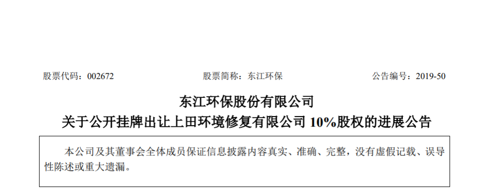 今日,中國(guó)環(huán)聯(lián)網(wǎng)獲悉,東江環(huán)保(00895)發(fā)布公告,2018年12月24日,公司第六屆董事會(huì)第二十六次會(huì)議審議通過(guò)了《關(guān)于擬公開(kāi)掛牌出讓上田環(huán)境修復(fù)有限公司10%股權(quán)的議案》,公司董事會(huì)同意通過(guò)公開(kāi)掛牌方式出讓公司持有的上田環(huán)境修復(fù)有限公司10%股權(quán),掛牌底價(jià)為人民幣2500萬(wàn)元。根據(jù)進(jìn)展,光大環(huán)...
