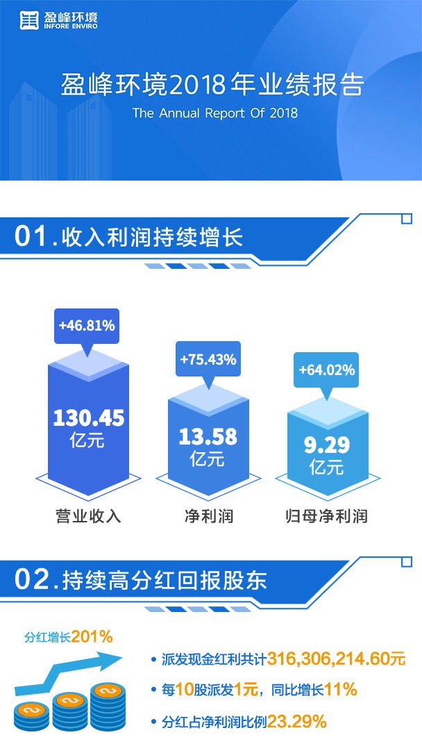 盈峰環(huán)境4月19日最新公布的2018年年報(bào)顯示,其營(yíng)業(yè)收入130億元,同比增長(zhǎng)46.81%;歸屬于上市公司股東的凈利潤(rùn)9.29億元,同比增長(zhǎng)64.02%?;久抗墒找?.41元。公司最新分配方案為每10股派發(fā)股息人民幣1元,股息率1.32%。具體詳情如下: