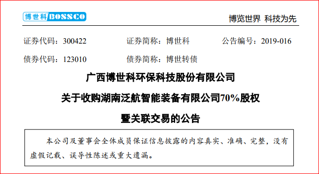 日前,廣西博世科環(huán)??萍脊煞萦邢薰?簡稱“博世科”)發(fā)布公告,公司擬收購西藏廣博環(huán)保投資有限責(zé)任公司持有的湖南泛航智能裝備有限公司(簡稱“泛航裝備”)70%股權(quán)。本次收購?fù)瓿珊螅汉窖b備將成為公司的控股子公司。 公告顯示,標的公司泛航裝備成立于201...
