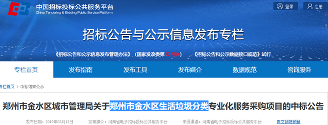 鄭州市金水區(qū)生活垃圾分類專業(yè)化服務(wù)采購項目發(fā)布中標公告,浙江聯(lián)運環(huán)境工程股份有限公司獲得包一,中標金額354.87萬,合同期限為1年。 中標信息具體如下: 相關(guān)新聞: 497萬/年,聯(lián)運環(huán)境中標安徽銅陵轄區(qū)居民小區(qū)生活垃圾分類項目 聯(lián)運環(huán)境中標浙江上虞垃圾分類項目 聯(lián)運環(huán)境2100萬中標合肥市瑤海區(qū)...