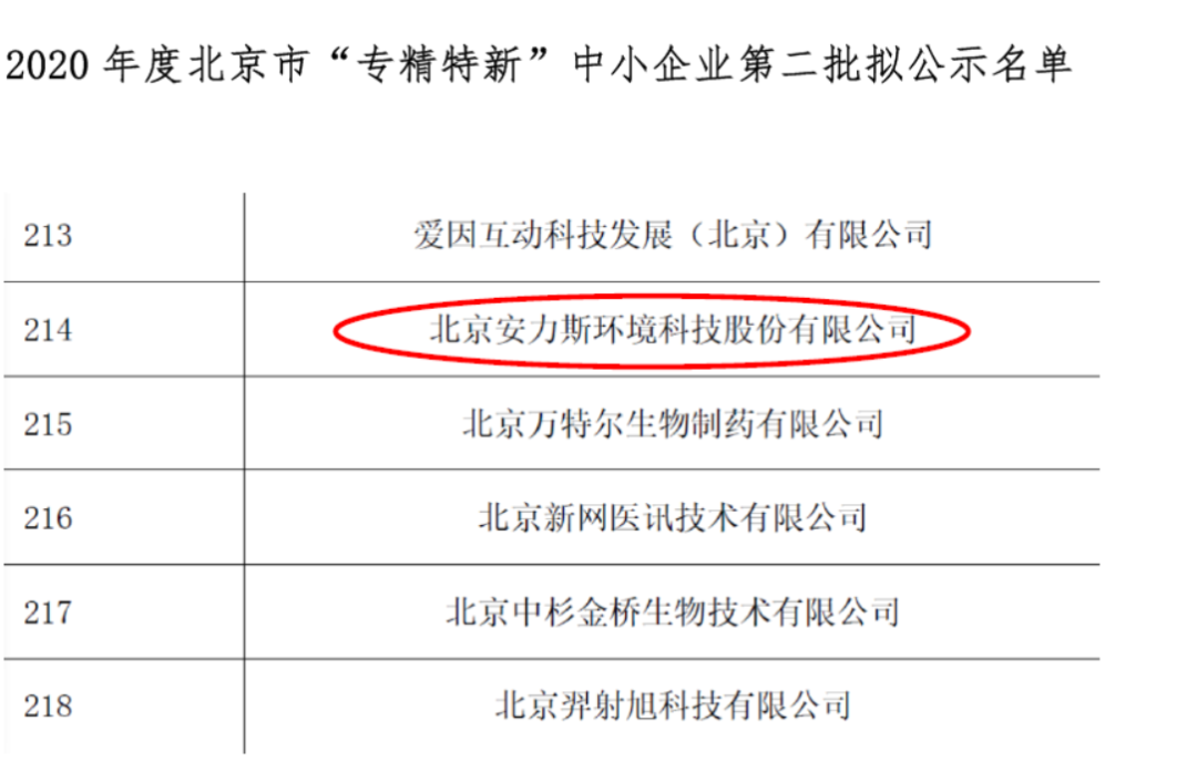 2020年7月,北京市經(jīng)濟(jì)和信息化委員會公示《2020年度北京市“專精特新”中小企業(yè)》第二批名單,北京安力斯環(huán)境科技股份有限公司(以下簡稱“安力斯環(huán)境”)成功入選,被授予2020年度北京市“專精特新”中小企業(yè)稱號。 近日,安力斯...